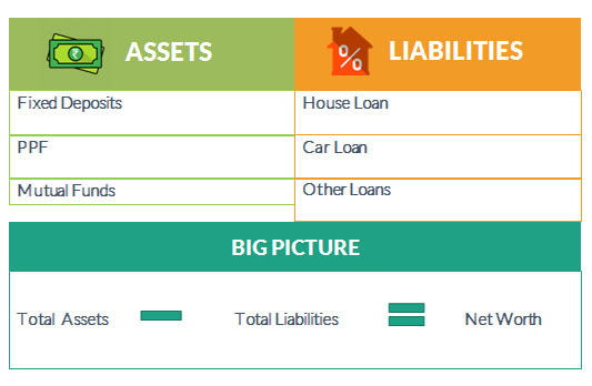 Look at your Assets and Liabilities, Calculate Net worth